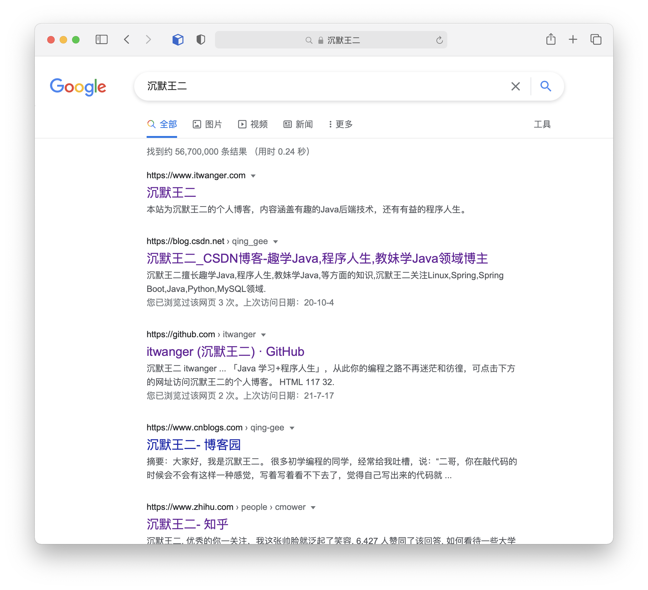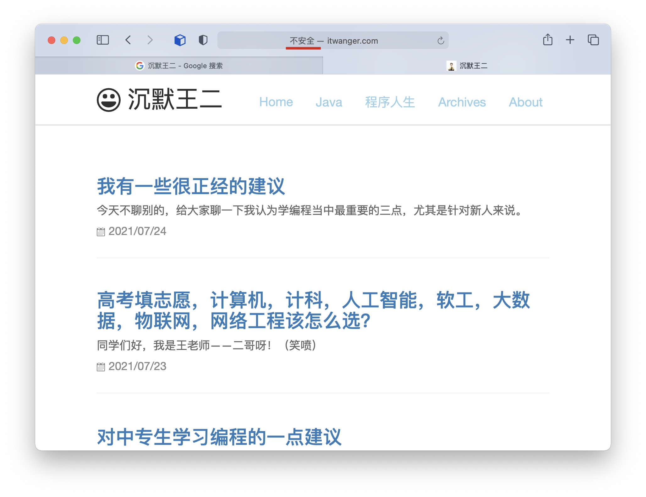 这不,大概过了两三天,当我再次搜索“沉默王二”关键字的时候,谷歌已经收录的是 HTTPS 网址的了。